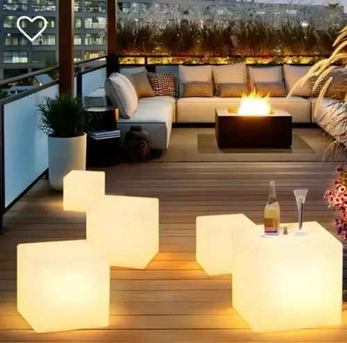 - Estetik ve İşlevsellik: Tabure olarak kullanılabilen bu küp, hem aydınlatma hem de dekoratif bir mobilya işlevi görür. İç ve dış mekanlar için ideal bir tamamlayıcıdır.